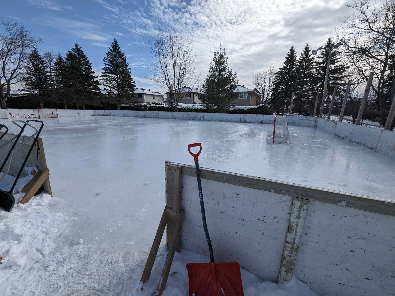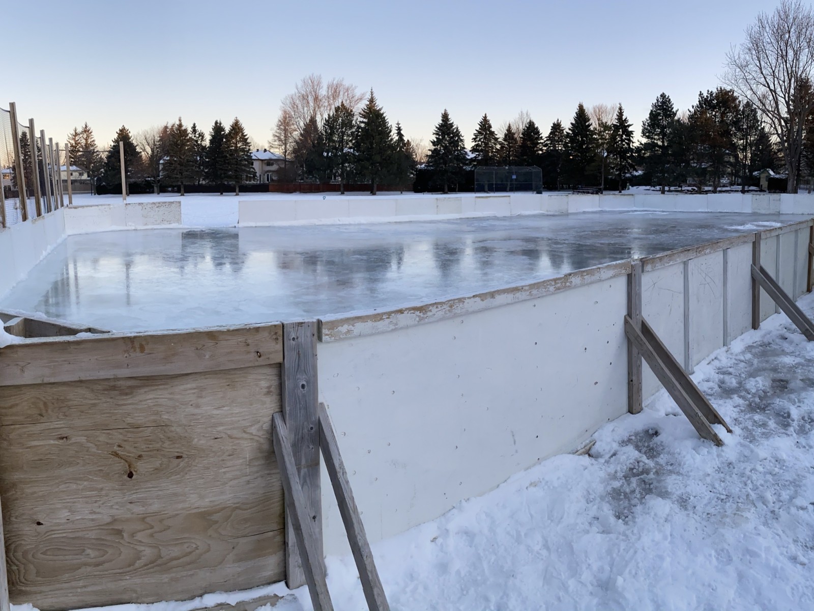 Pooled Water. Ice surface soft, (please keep off).