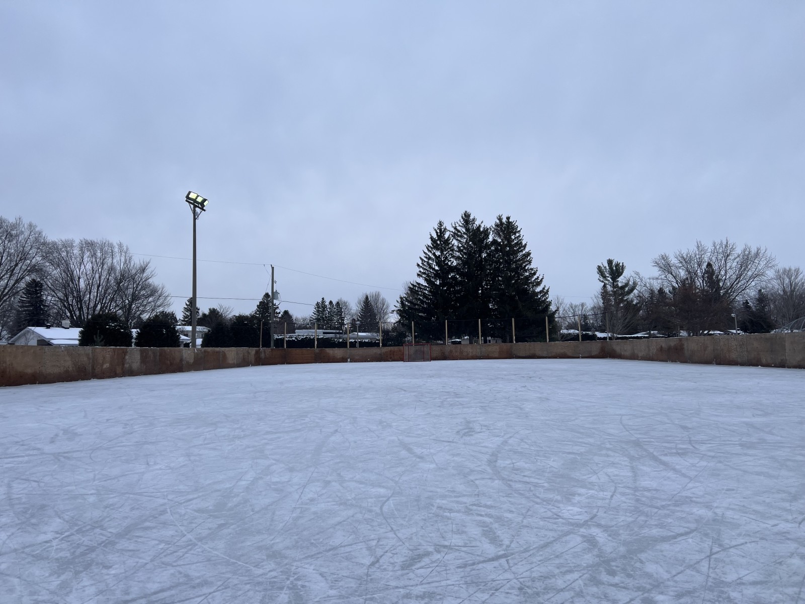 Snow along boards. Ice generally good. Recently shoveled