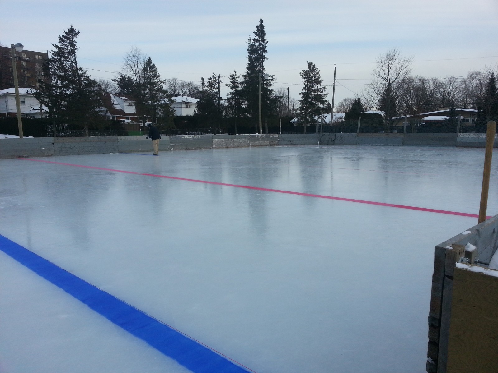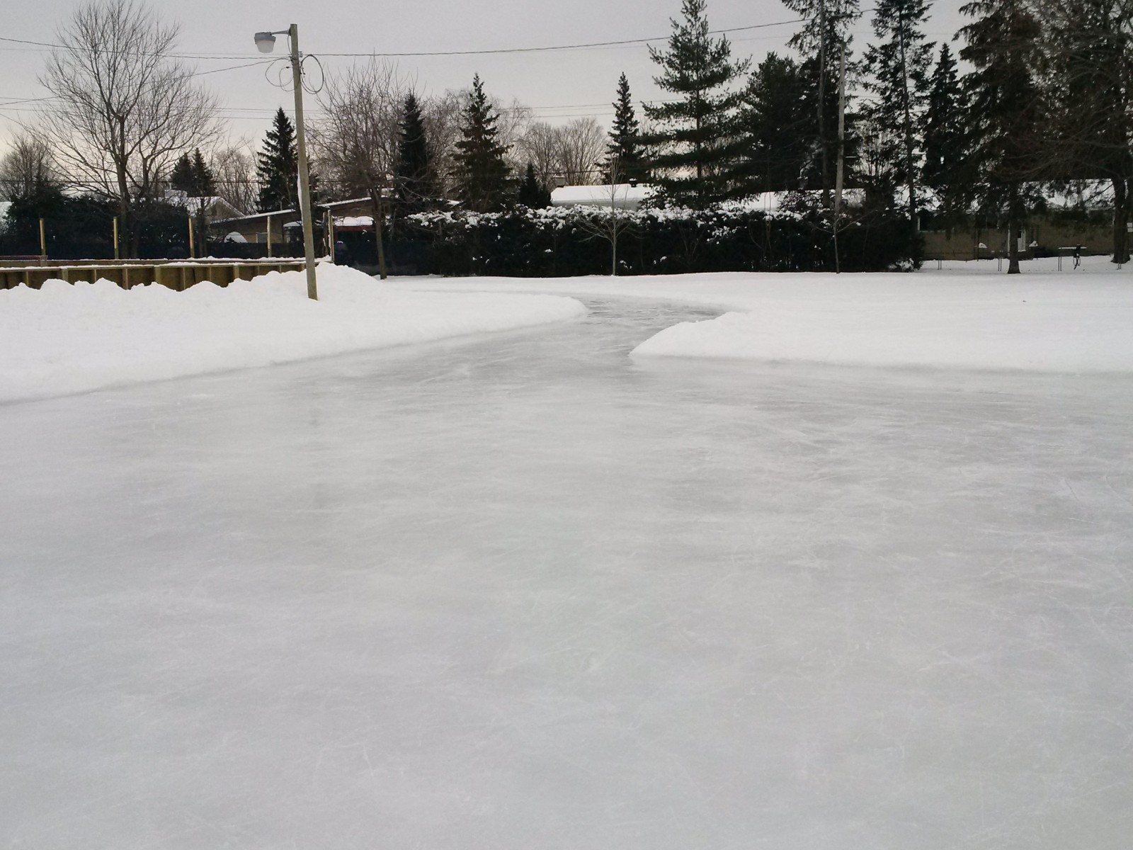 Recently Flooded. Ice generally good. Recently shoveled Heavily populated